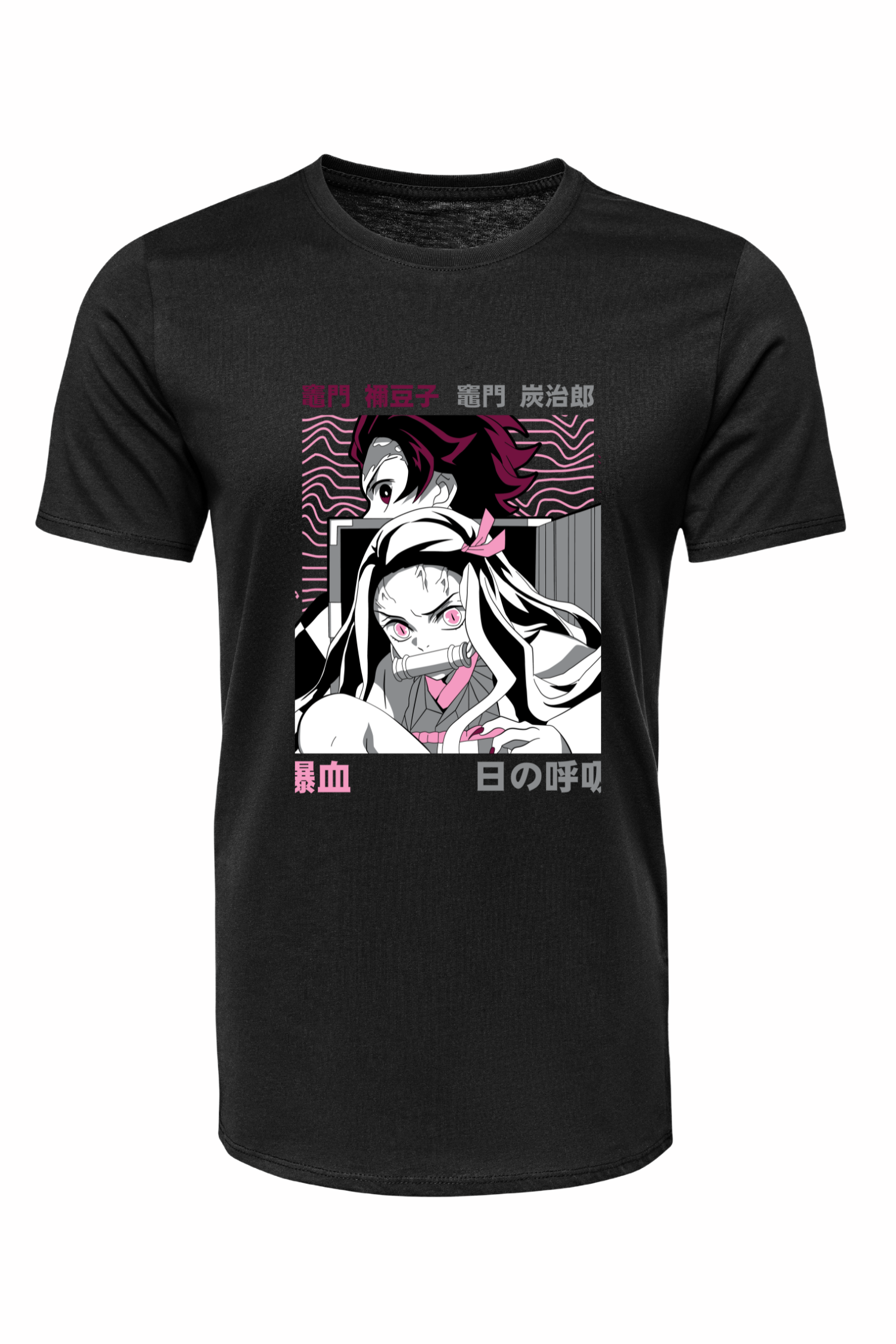 חולצה איכותית 100% כותנה עם עיצוב של טאנג'ירו ונזקו, השניים הלוחמים יחד במאבק נגד השדים