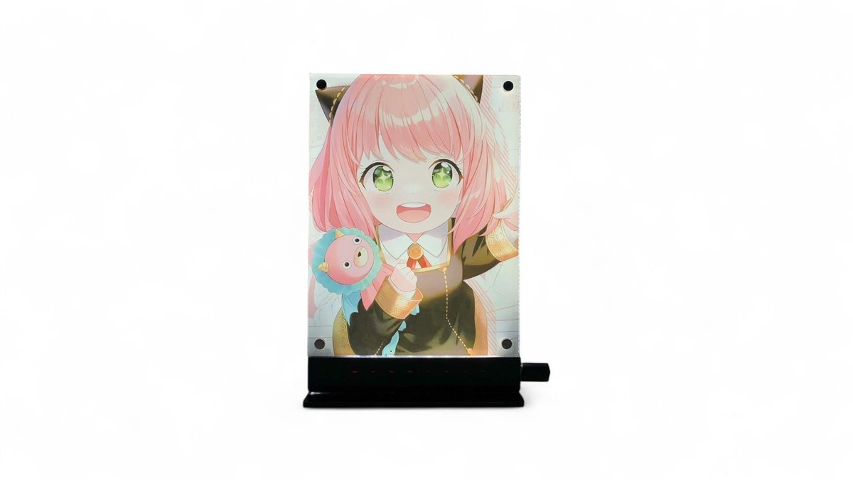 מעמד פוסטר אקריל עם עיצוב שונה מכל צד מואר ע"י כבל