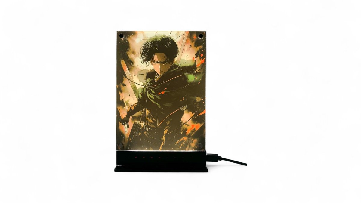 מעמד פוסטר אקריל עם עיצוב שונה מכל צד מואר ע"י כבל