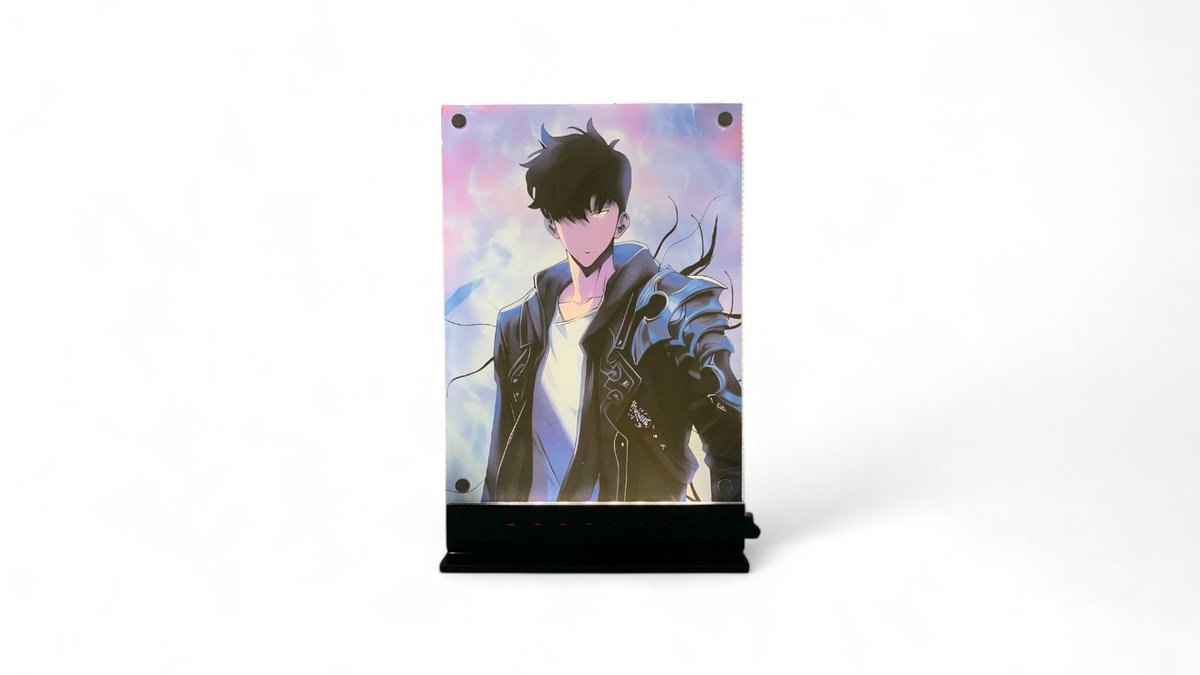 מעמד פוסטר אקריל עם עיצוב שונה מכל צד מואר ע"י כבל
